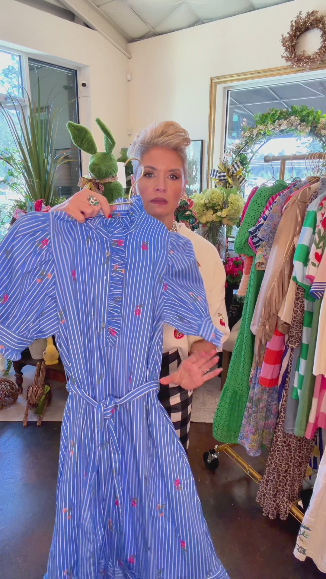 Fresh, polished, and ready for every invitation on your calendar, this blue striped floral midi dress is the definition of effortless charm.