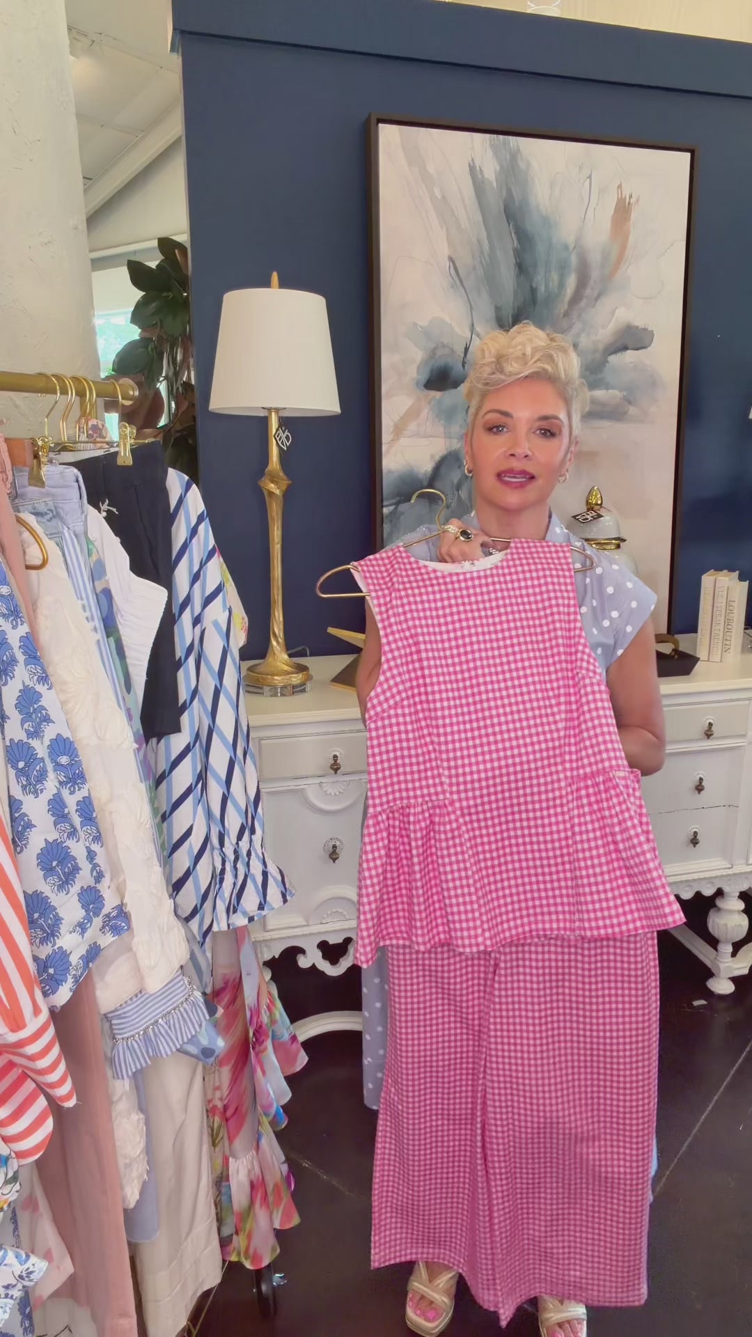This pink gingham peplum top is a cheerful, polished piece that instantly brightens your outfit. The classic pink and white gingham print gives it that timeless spring charm while still feeling fresh and modern. It’s the kind of sleeveless gingham blouse that works beautifully for brunch, showers, or sunny days out.