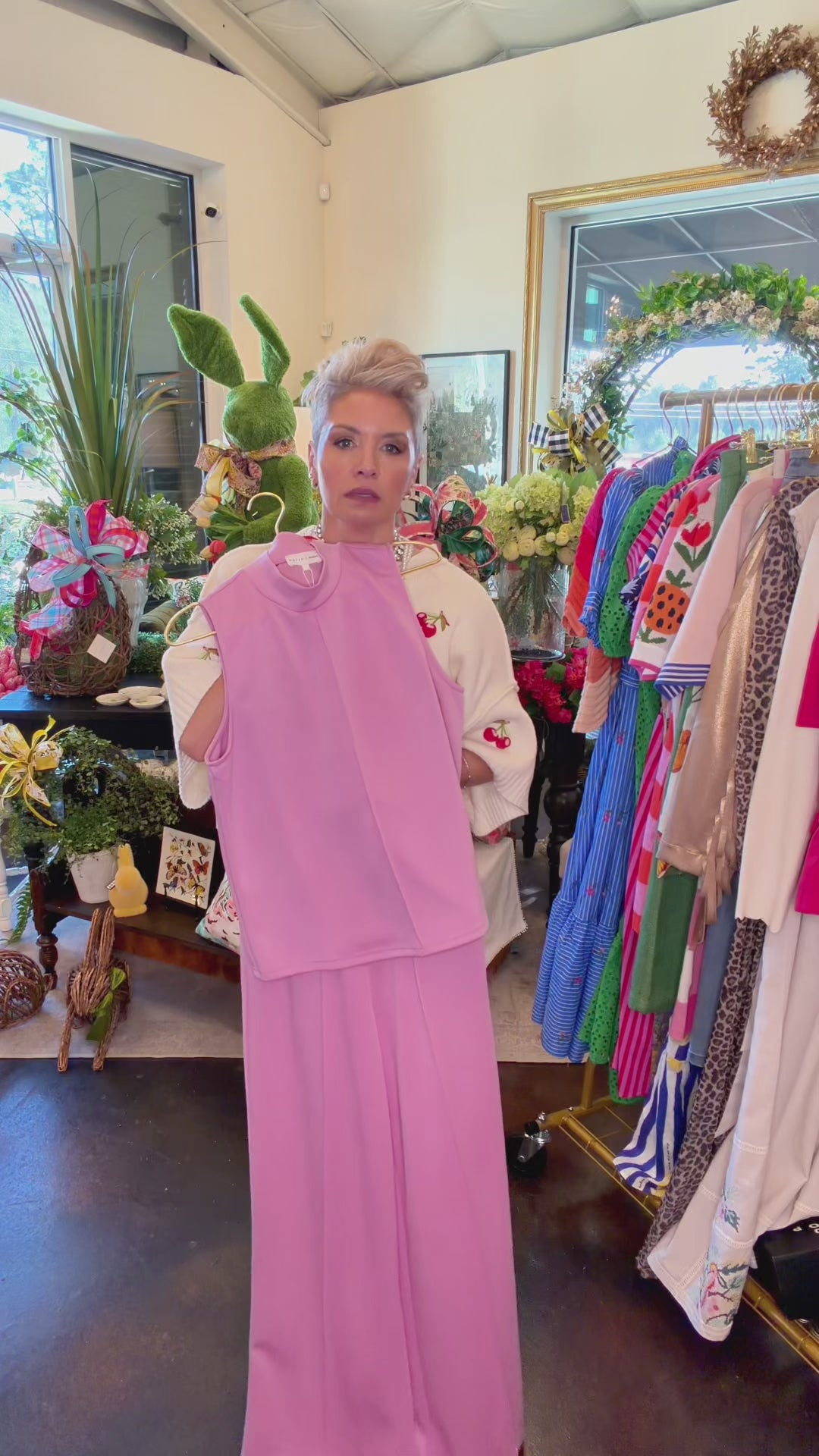 This pink sleeveless mock neck top features a clean, modern silhouette with a subtle center seam that elongates the torso. The mock neckline gives it a tailored feel without being restrictive, and the smooth knit fabric drapes beautifully without clinging. It has just enough structure to hold its shape while remaining soft and breathable.