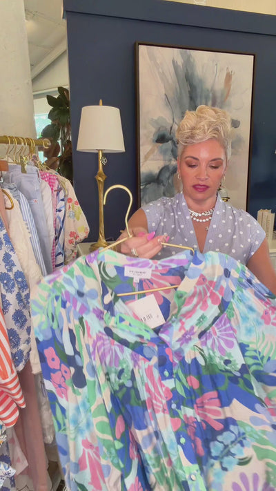 A colorful blouse like this instantly brightens your wardrobe, and this sheer floral statement blouse does exactly that with its soft watercolor-inspired print and airy silhouette. The fabric features a beautiful mix of blue, green, pink, and lavender florals, creating a lively palette that feels fresh, artistic, and perfect for spring.