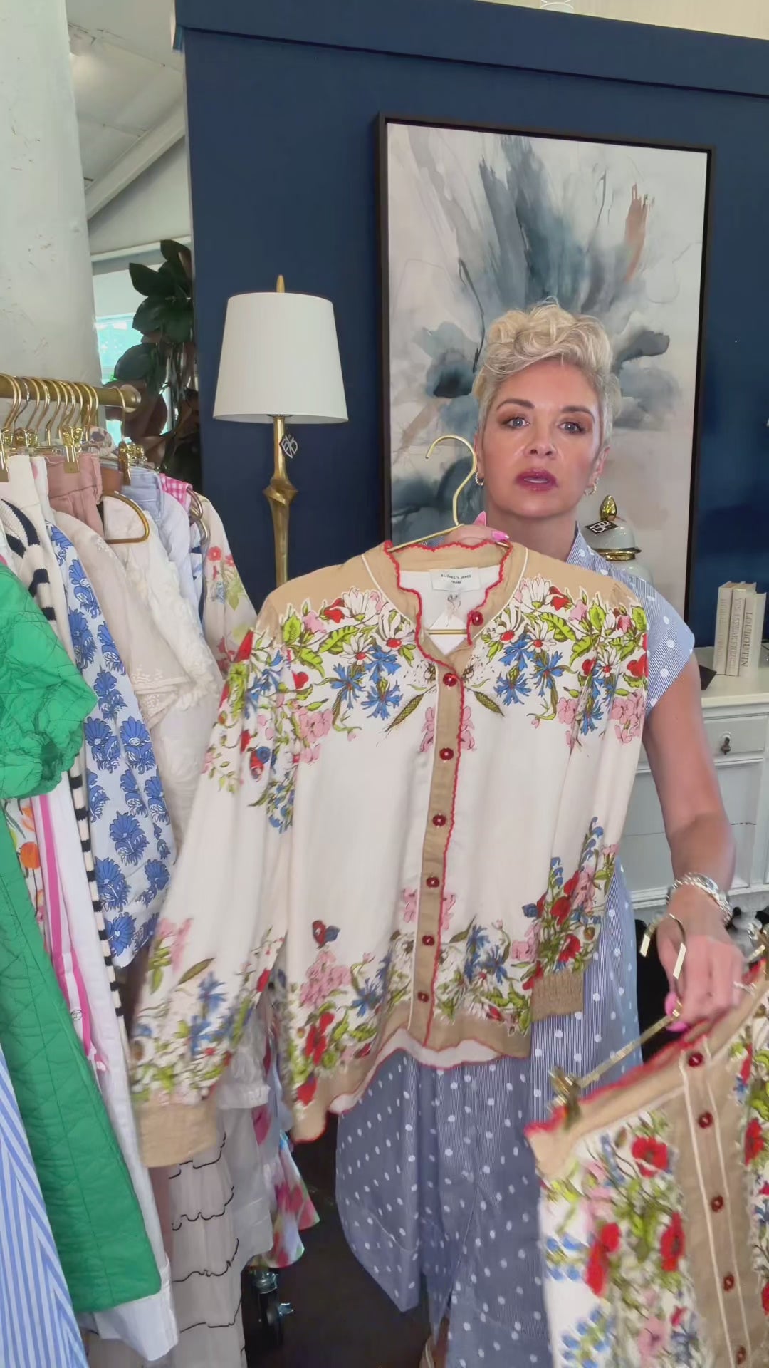What really makes this piece special are the thoughtful accents. The contrasting golden placket and collar trim create a beautiful frame down the front, while the red scalloped edge stitching and floral-shaped buttons add a playful, boutique-quality touch you don’t see everywhere. The neckline has a soft ruffle that stands up slightly for a flattering face-framing effect.