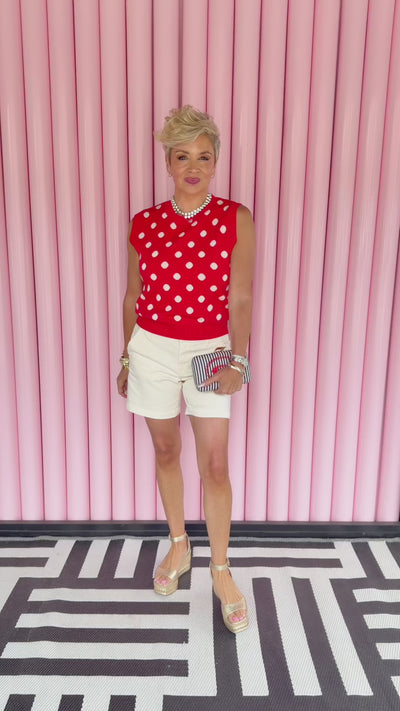 Polka Dot Sleeveless Sweater/Red